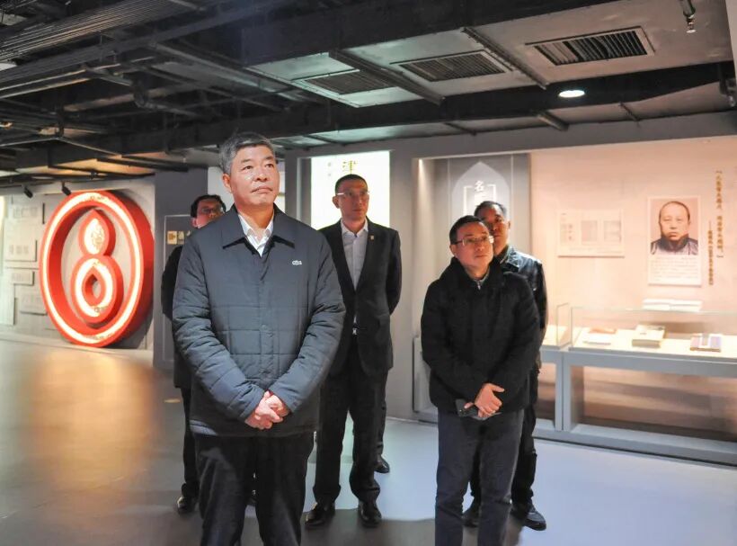 姚嘉勇一行在腾博官网诚信为本医药集团期间,深入腾博官网诚信为本达仁堂和第六中药厂、团支部联系点进行调研座谈,分析基层党建、企业生产经营等情况,并参观生产车间、达仁堂中医药博物馆。